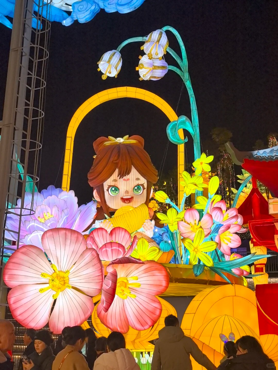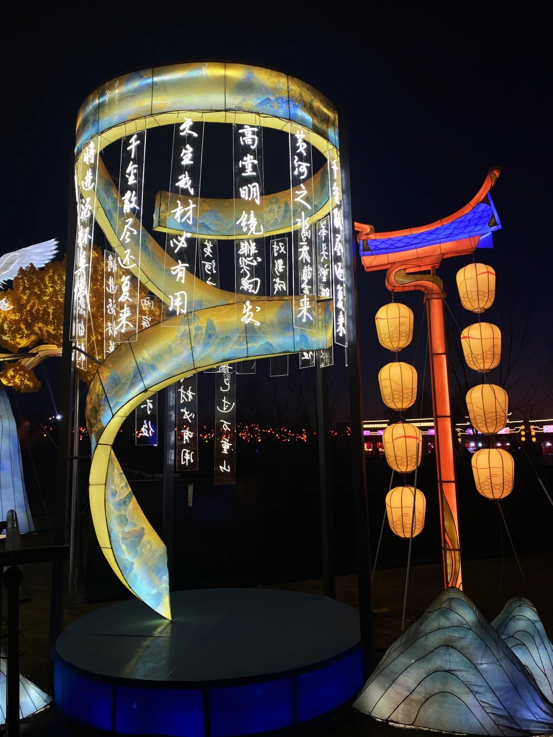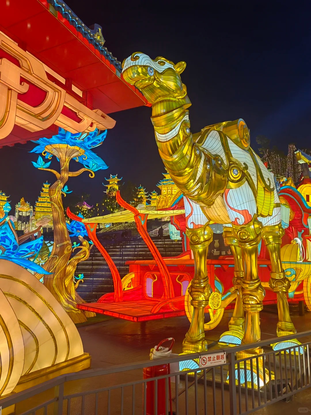 除160米飞天龙车、15米鲁班七号3D灯像外,新增“抬头有龙”主灯成为视觉核心,该灯组采用机械传动与追光特效,龙身可实现360°旋转,龙鳞处追光效果模拟“龙游星河”的动态场景;鲁班七号灯组则通过液压传动装置实现炮台升降、发射等互动特效,打破传统彩灯的静态局限。