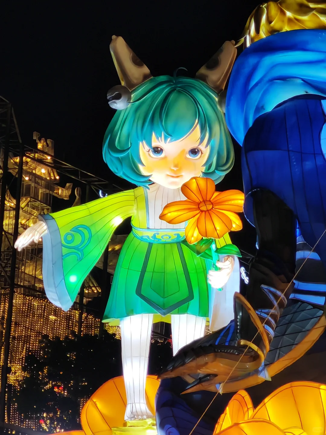 材质层面采用新型水晶树脂替代传统布料,精准还原英雄皮肤纹理;技术层面创新应用3D打印复刻人物细节,融入AI年兽智能灯组,同时使用废旧矿泉水瓶制作“中国龙”主体,兼顾科技感与可持续发展理念。