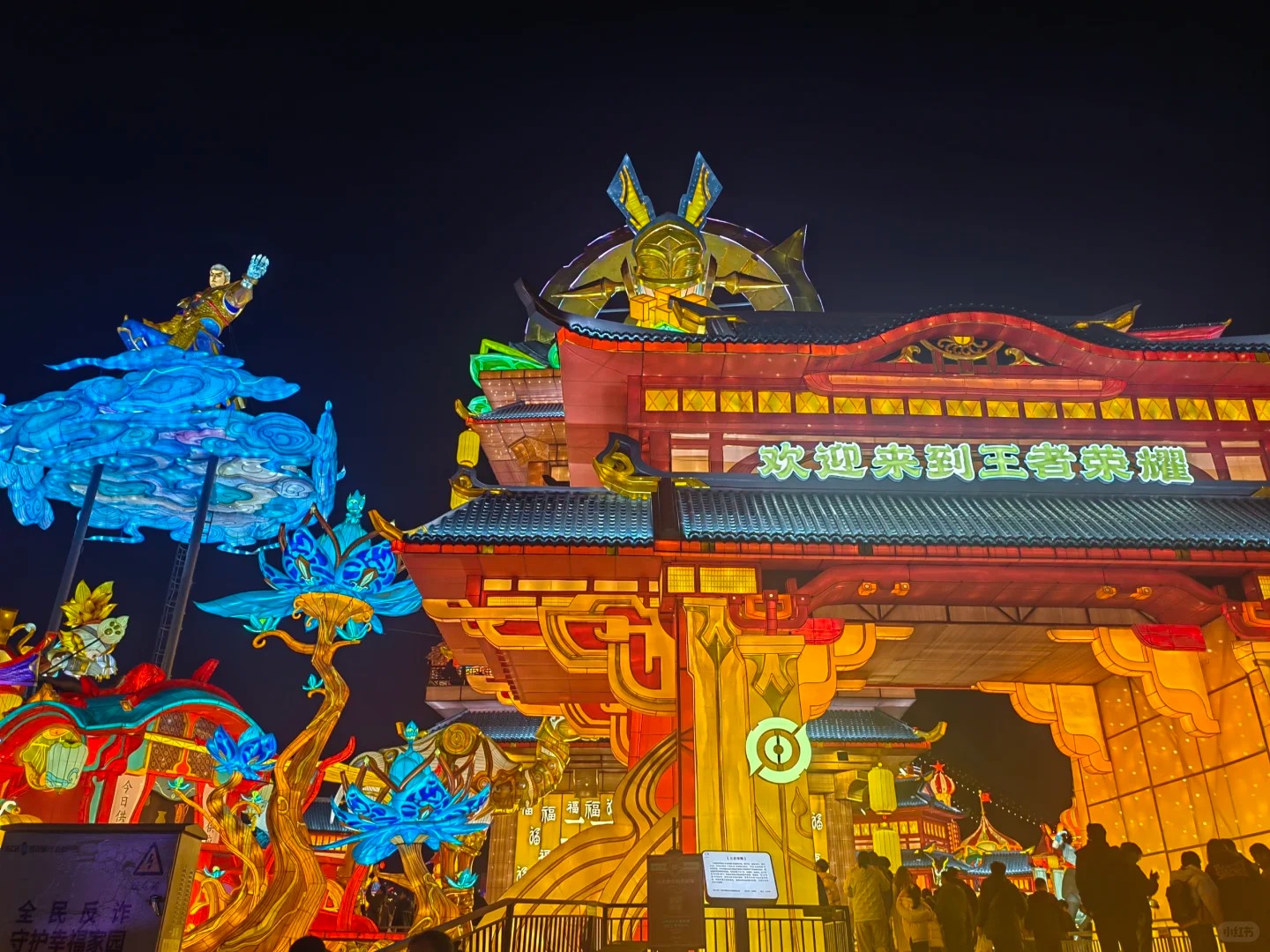 游客沿龙车行进路线可穿越“锦上添花站”“步步高升站”“时来运转站”等特色打卡点,每个站点设置专属英雄互动环节:扫码即可接收英雄语音新年祝福,与貂蝉、李白等角色灯组完成AR合影,沉浸式体验从“英雄集结”到“峡谷庆团圆”的完整叙事线。