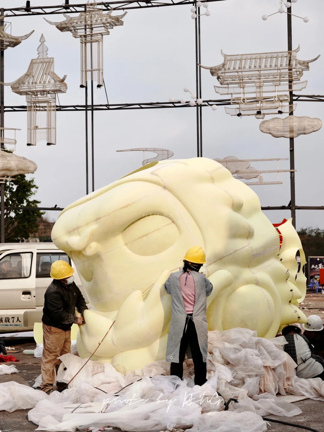 首次大规模将3D打印技术应用于彩灯制作,针对英雄面部、武器等精细部位1:1复刻,突破传统布料裱糊精度限制。打印材料选用特制透光树脂,既保证细节还原度,又具备良好透光性,使英雄细节在灯光下清晰可见。