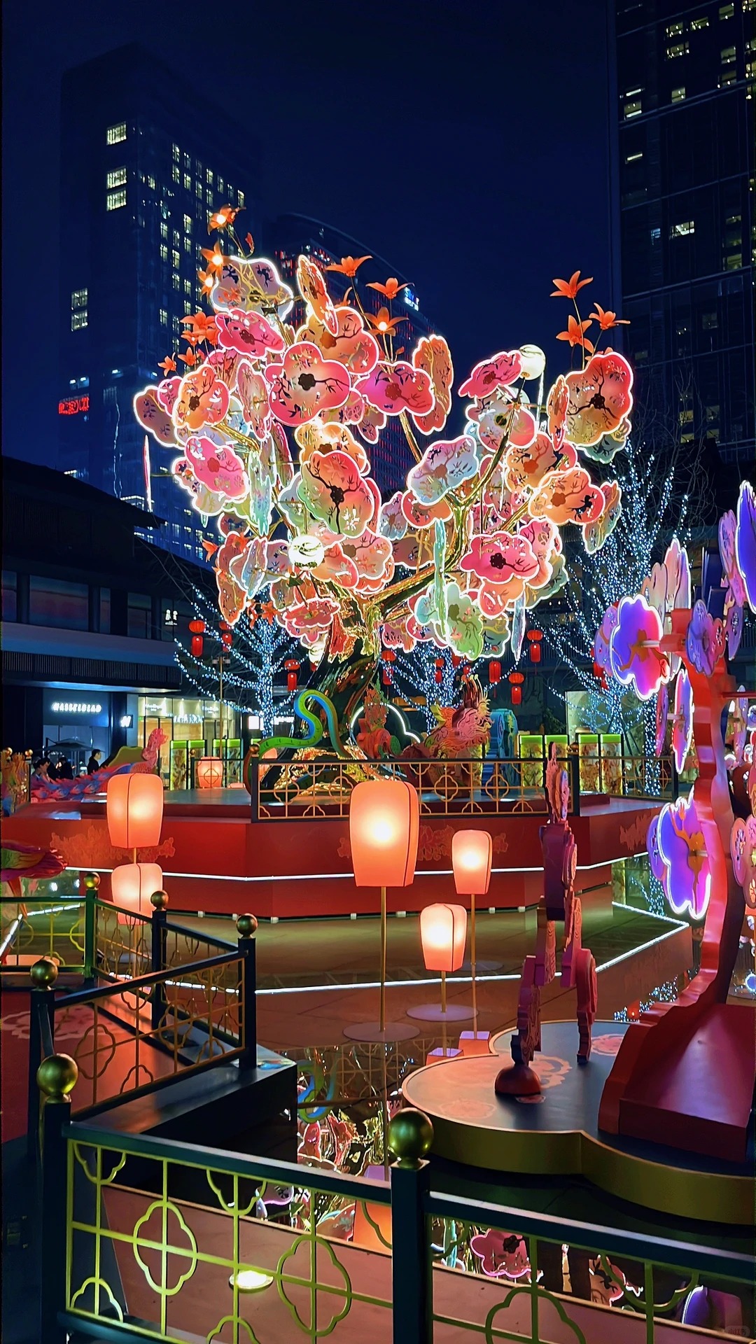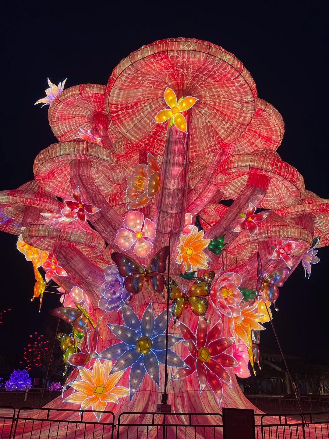 设计迭代中,团队还推翻了“对称式树冠”的传统布局,采用“自然生长式”非对称设计,左侧树冠舒展如翅膀,右侧紧凑如花苞,象征“开放与沉淀”的城市发展哲学,让静态的花灯拥有动态的生长感。
