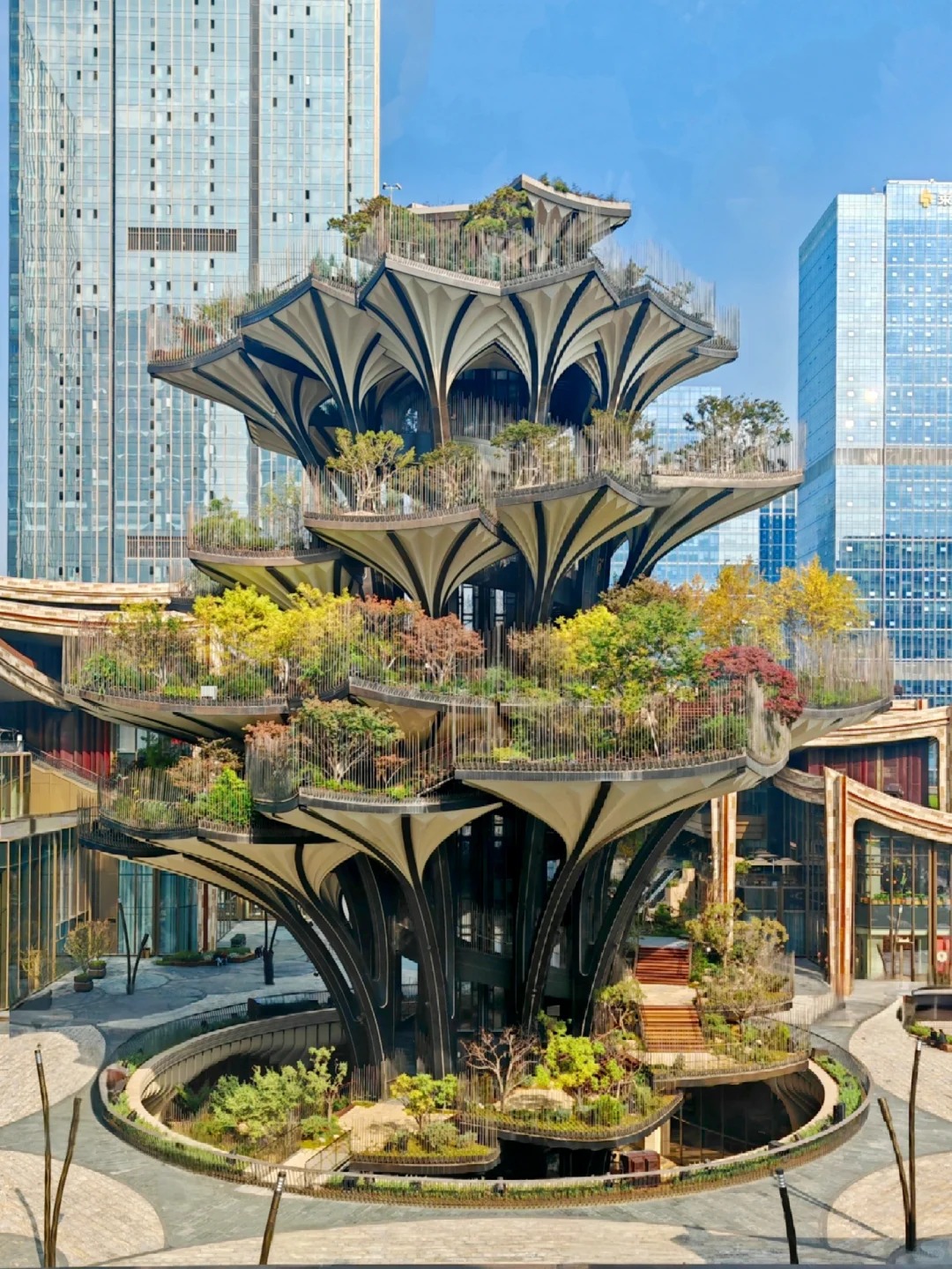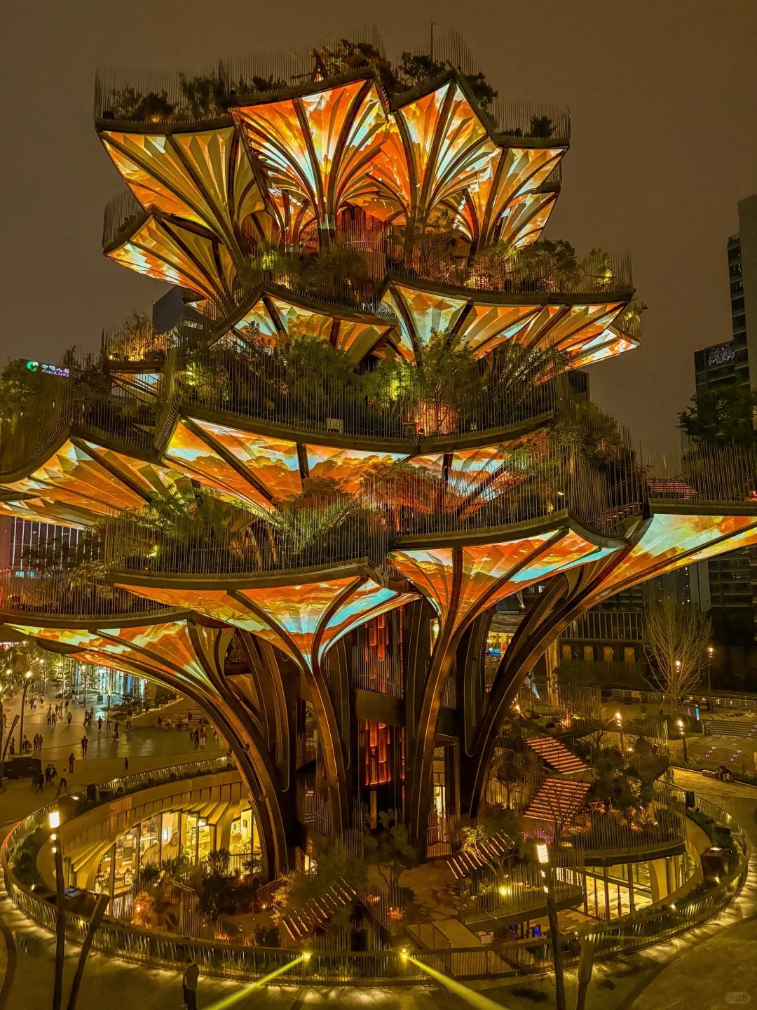 传统符号的融入,让“生命之树”深植东方文化沃土。它承载着“树神崇拜,天人合一”的哲学思想,18米树高呼应“十八罗汉”吉祥寓意,12米树冠直径对应一年12个月,9999片树叶暗含“九九归一”的东方智慧,让现代设计与传统文化深度契合。“生命之树”核心在于传统与创新融合:传统彩灯技艺与现代钢结构、LED技术等耦合,实现“匠心+科技”双向赋能,突破传统局限。